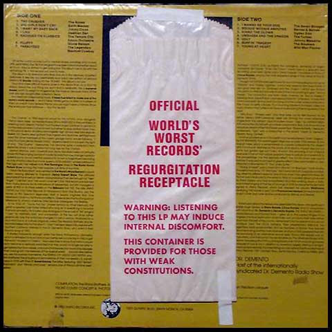Album winylowy z 1983 roku z najgorszymi nagraniami świata i torebką na pawia jako załącznik.