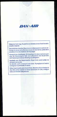 Dan Air bez "London" adresuje worek nie tylko do Londyńczyków, na dowód tego umieszczono instrukcje w pięciu językach.